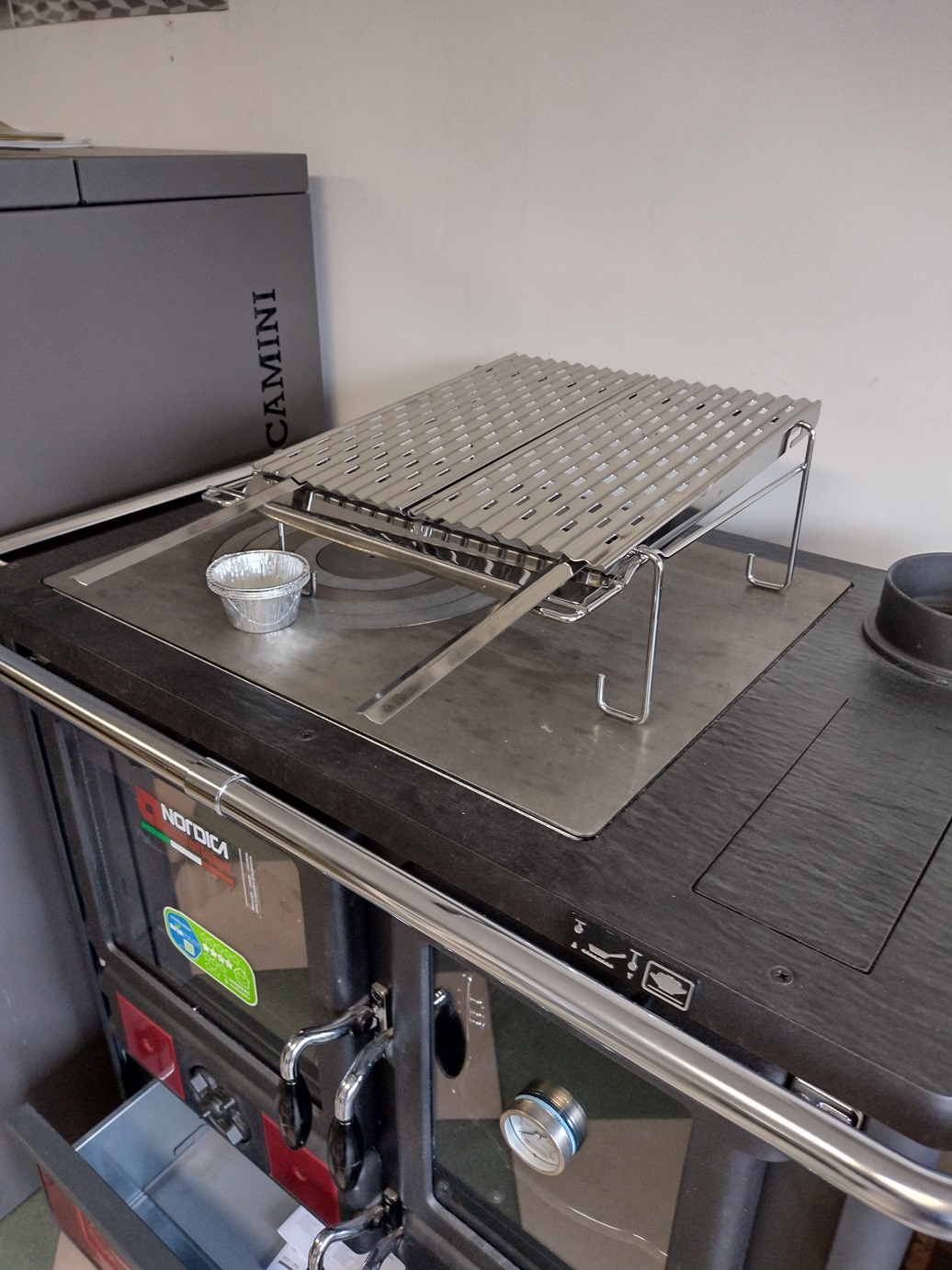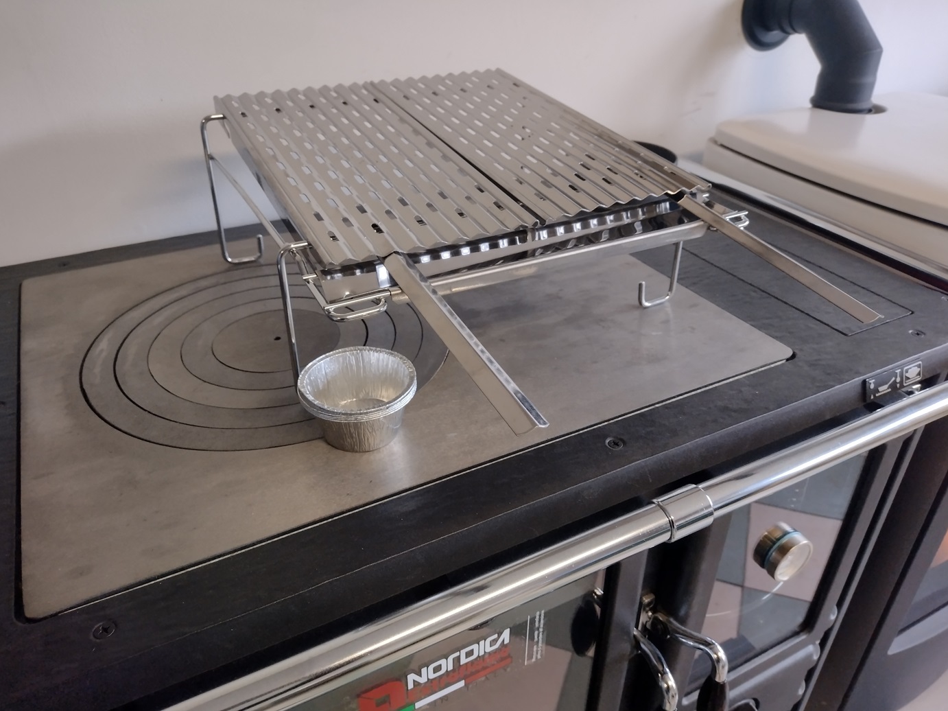 Wir stellen den Grill auf den Herd und können unter dem Einfluss der Hitze des Herdes in heimeliger Atmosphäre Grillgerichte genießen.