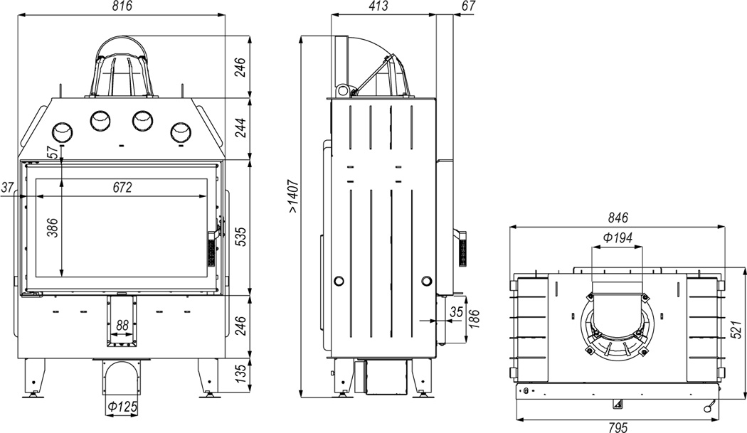 Flue diameter; 200 mm