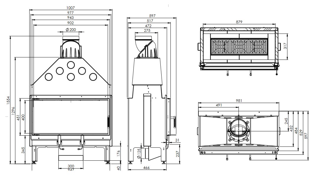 The insert is equipped with a Ø200 cast iron flue with a 360 degree adjustment, which enables the discharge of exhaust gases in every direction.