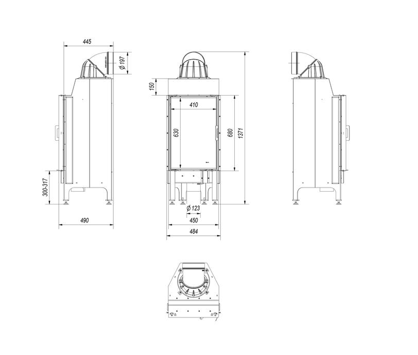 The triple combustion chamber ventilation system: primary air – is directed to the combustion plate; Secondary air is provided with holes in the back wall. In addition, a clean glass system (air curtain) is used in the cartridge.