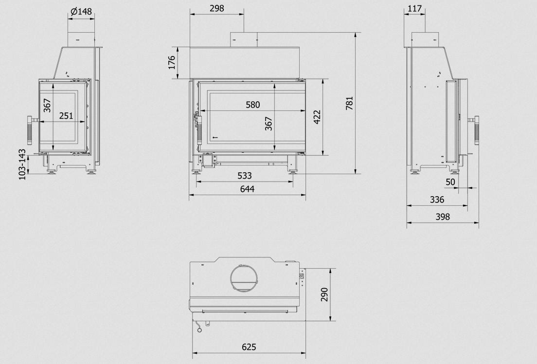 Decorative glass type with a temperature of up to 660 ° C, which gives the chimney a modern and elegant look, optically increases the front of the insert.