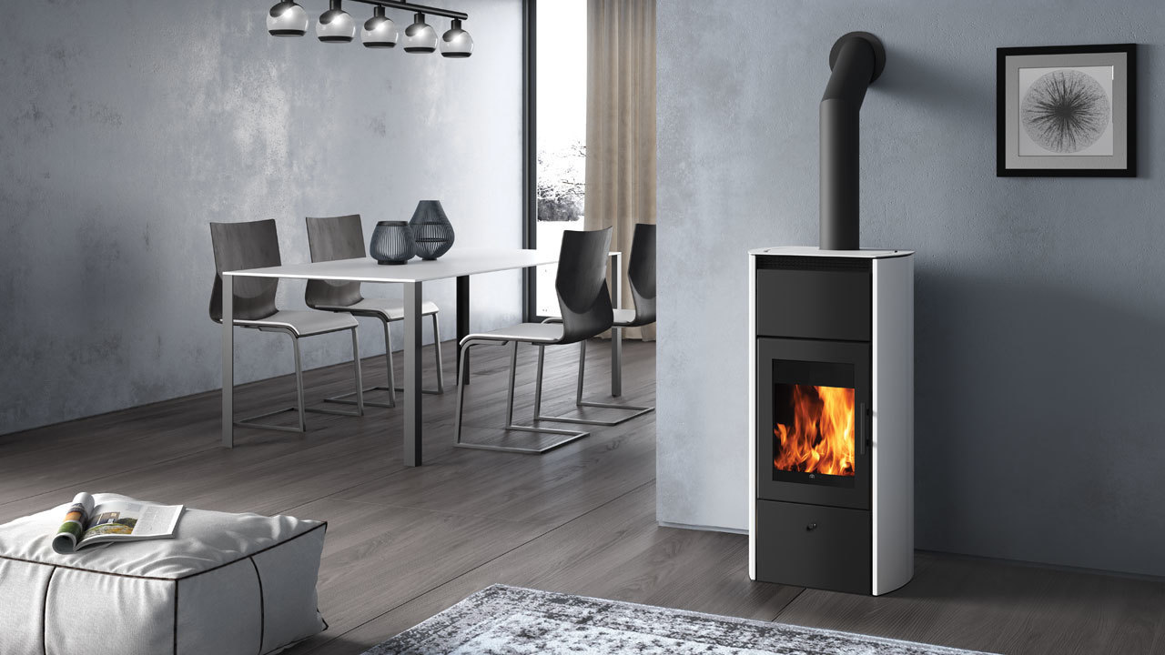 • kermické obloženie vo farbách pergamen, bordová, biela a tmavo šedá • ohnisko zo šamotu a ocele • horní odkouření • bez expanznej nádoby • drevená polienka vertikálne až do 50 cm, horizontálne do 33 cm