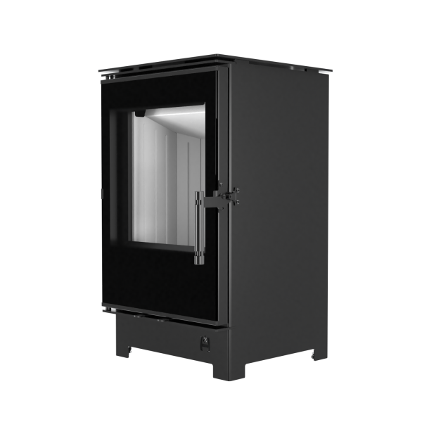 The LYNX S free-standing fireplace is a modern, minimalist wood heater, characterized by high thermal efficiency and clean, ecological combustion. The freestanding stove has a simplified external structure and small dimensions. The LYNX S free-standing goat has a closed combustion chamber and the possibility of installing an external air inlet connector, thanks to which it can be installed in houses with mechanical ventilation (recuperation).