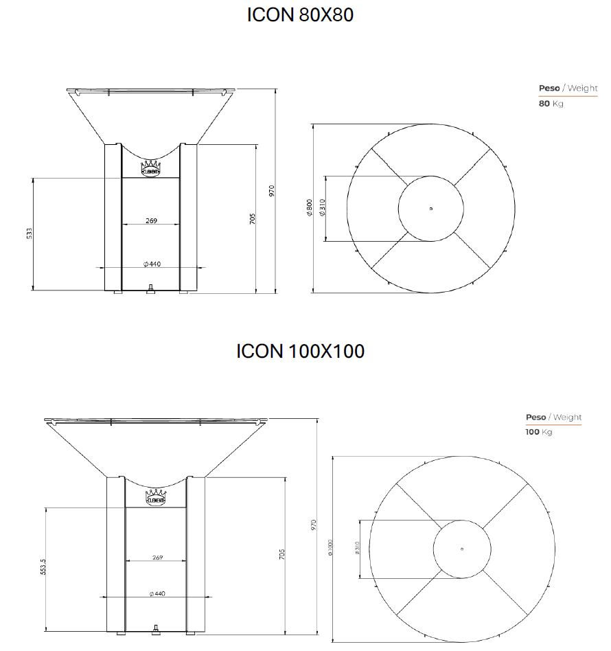 Powierzchnia do gotowania wykonana ze stali dopuszczonej do kontaktu z żywnością, idealna do równomierne i bezpieczne gotowanie. Płyty gwarantują optymalna dystrybucja ciepła, aby uzyskać soczyste i chrupiące potrawy, zachowując jednocześnie autentyczny smak grilla opalanego drewnem. Łatwy do czyszczenia, zapewniają odporność i trwałość na przestrzeni czasu.
