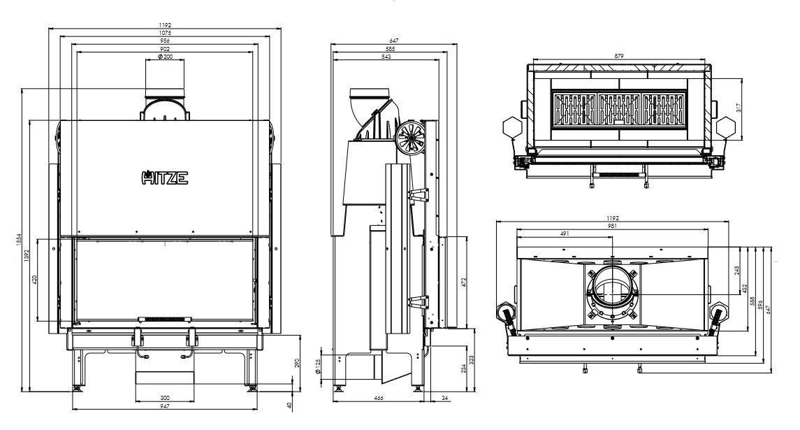 The insert is equipped with a Ø200 cast iron flue with a 360 degree adjustment, which enables the discharge of exhaust gases in every direction.