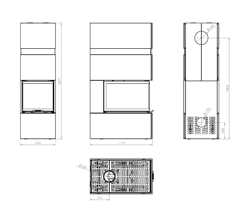 Wkład wyposażony w żeliwny czopuch Ø200 z regulacją 360 stopni, dający możliwość odprowadzania spalin w każdym kierunku.
