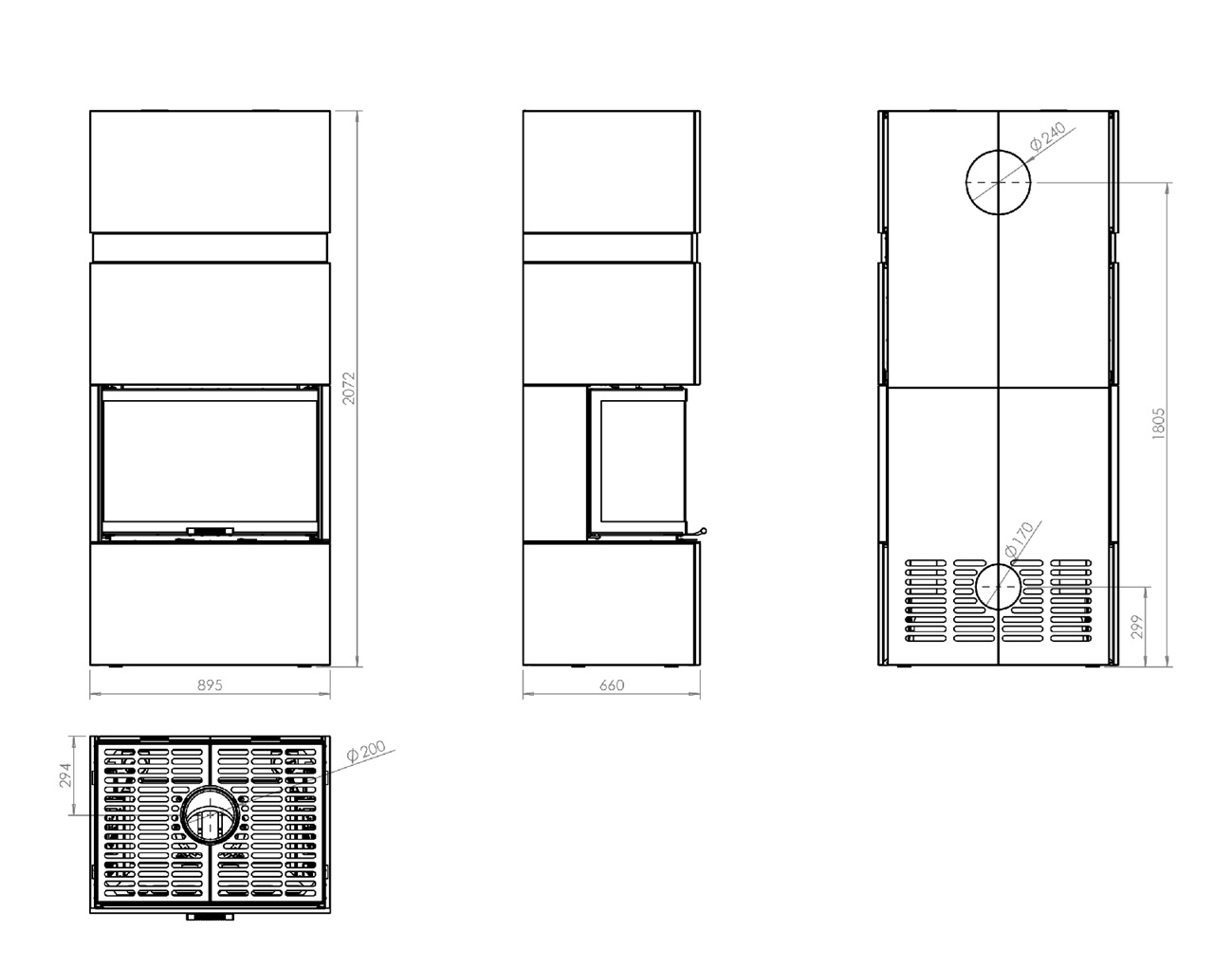 Kominek powietrzny stalowy KRATKI LUCY lewy BS 12 kW Ø 200
