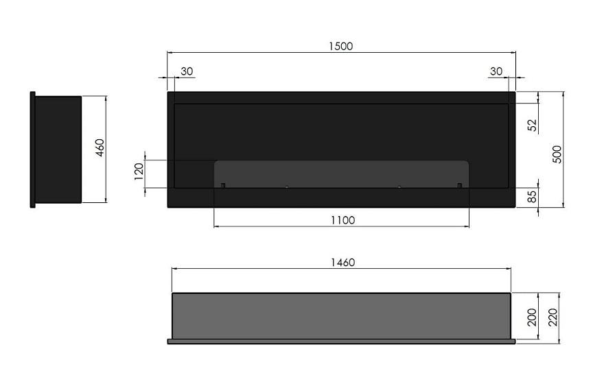 parametre Rozmer: 1500 x 500 x 220 Hearth: 1000 LONG = 3L Čas horenia: 1 – 2 hodiny Sklo: tvrdené sklo 4 mm Farba: čierna Záruka: 24 mesiacov