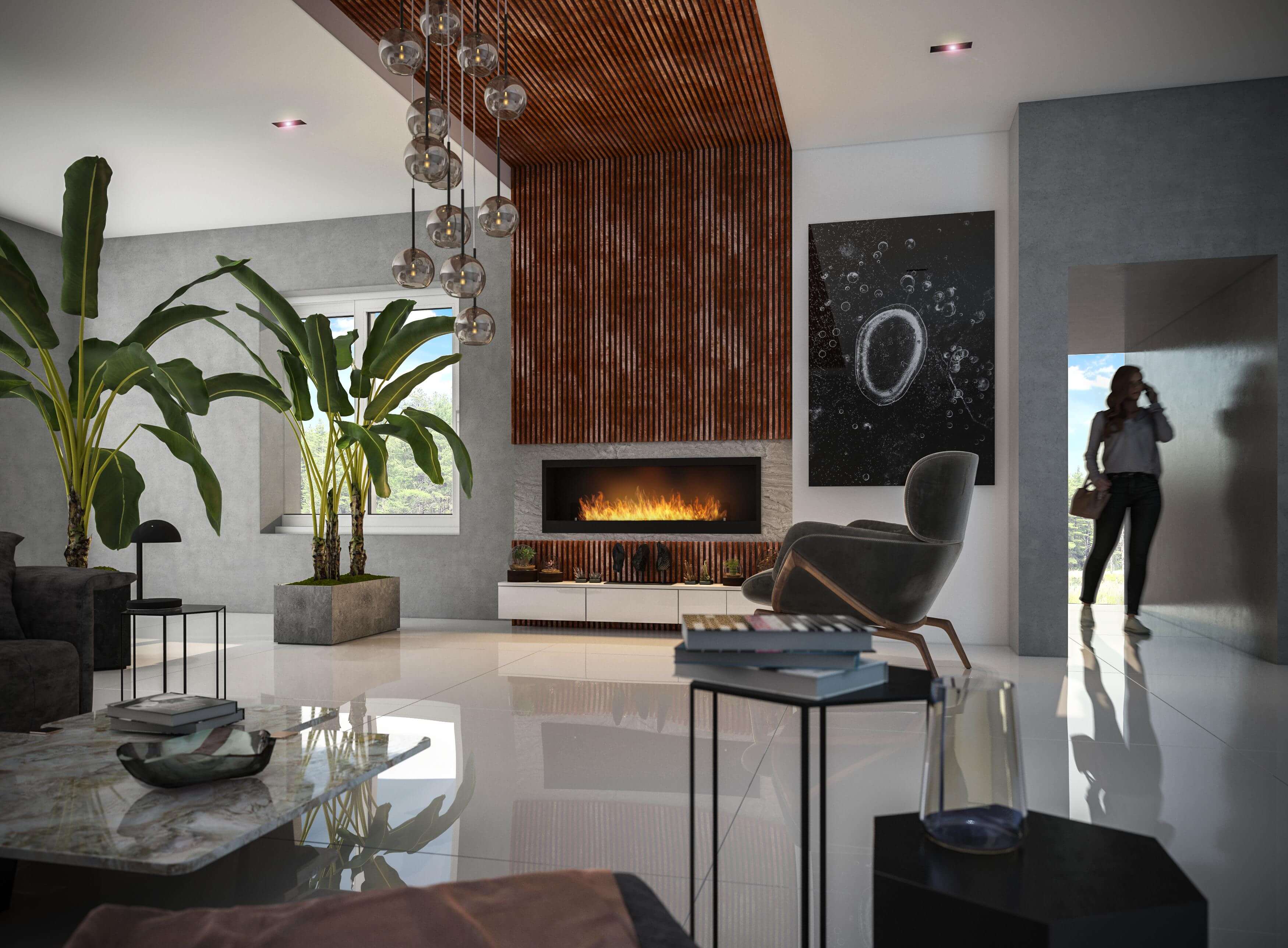 INSIDE 1500 – der größte eingebaute Kamin aus unserem Angebot. Es hat einen 1000mm langen Kamin mit einer langen Schusslinie.