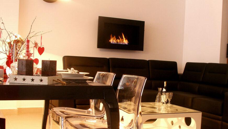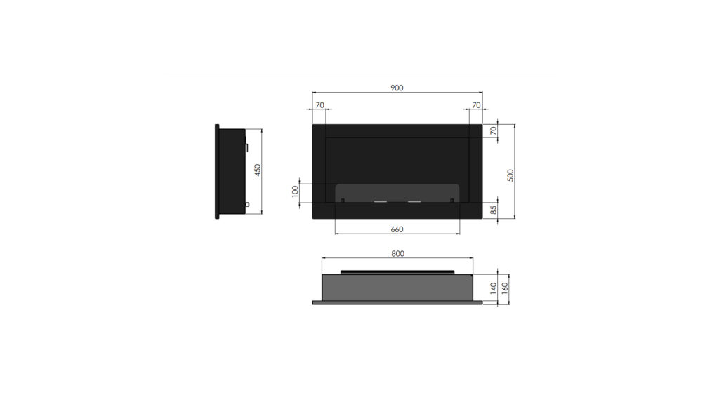 Model INSIDE 900 to uniwersalny kominek, który można zawiesić na ścianie lub wstawić w przygotowaną wnękę tak, aby ramka zlicowała się ze ścianą. Inside 900 to perfekcyjnie dopracowana forma z efektywnym oddawaniem ciepła do pomieszczenia. Kominek wyposażony jest we własny system odpowietrzający, co zapobiega powstaniu ciśnienia pod palnikiem przy ewentualnym przelaniu paliwa. Standardowo kominek wyposażony jest również w szybę ochronną, która podnosi bezpieczeństwo użytkowania oraz stabilizuje palenie się ognia.