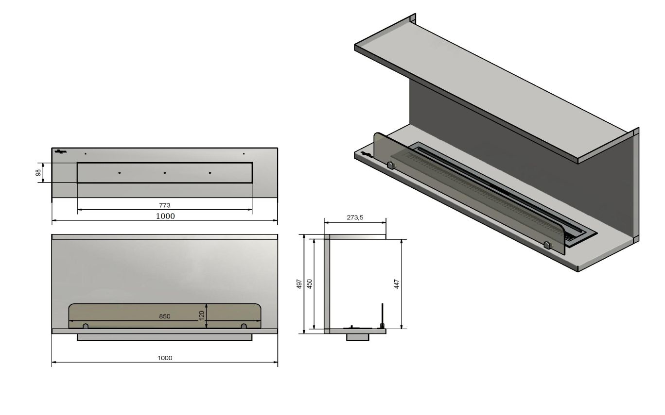 Dimensions: 1000 x 450 x 250 mm