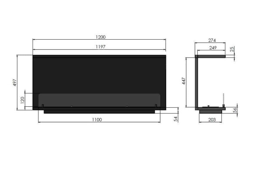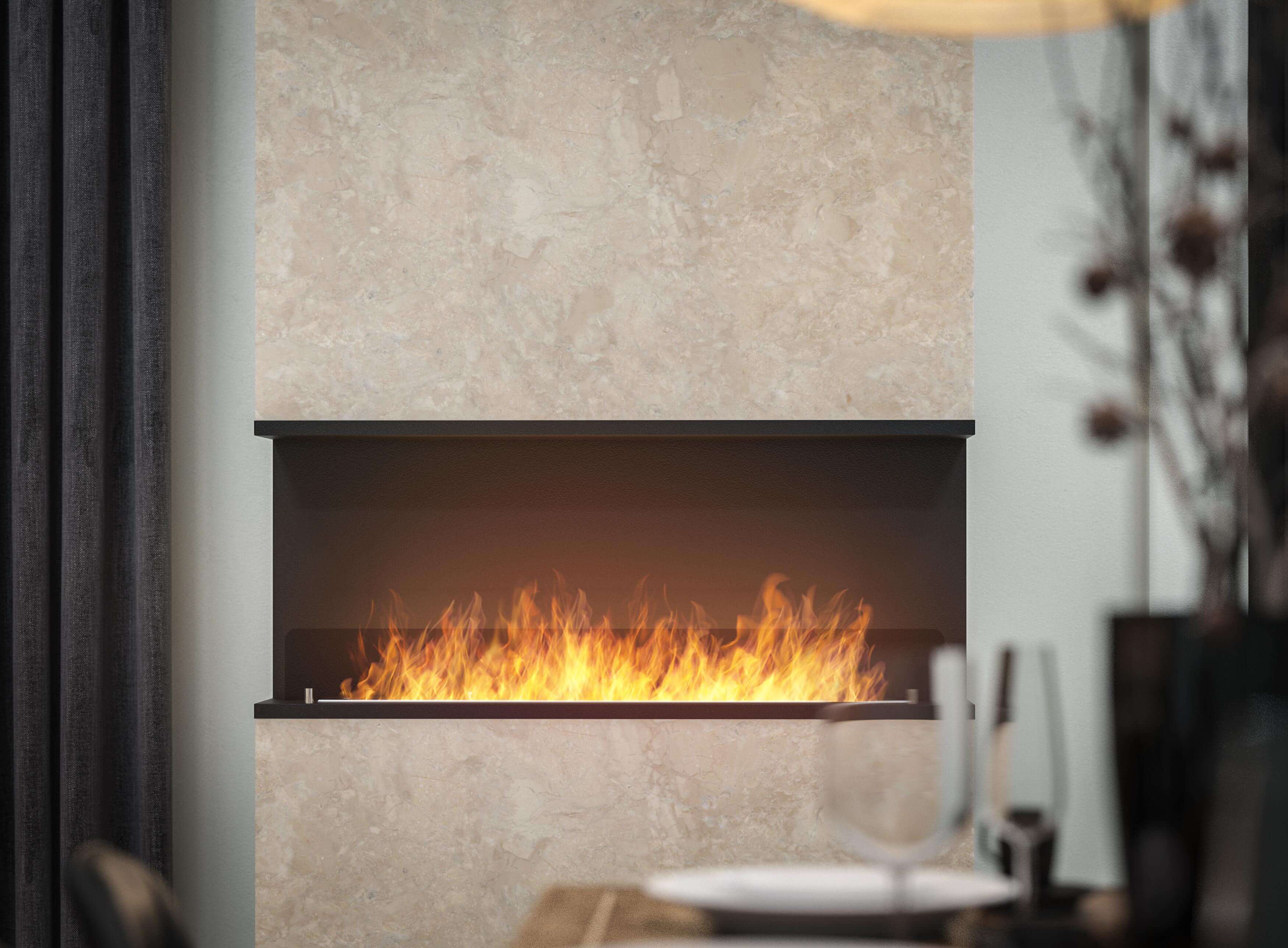 INSIDE C1200V2 je krb pripravený na inštaláciu v pripravenom vybraní. Jeho konštrukcia uľahčuje inštaláciu do steny, pretože vďaka ohnutému prekrytiu je možné zakrývať nedostatky otvoru vyrezaného v stene. Pripravený formulár ďalej vytvára rámec pre oheň, ktorý je možné vidieť z troch strán. Jednoduchý a jemný dizajn krbu bude fungovať v akomkoľvek interiéri a navyše je ideálnym zázemím pre domáci krb.