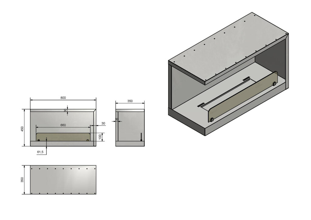 Kominki Inside L & P 800 Vers2 są modelami do prostego montażu we wnęce. Rama kominka jest rozbudowaną wersją zawierającą w sobie system odpowietrzający zapobiegający powstaniu ciśnienia pod palnikiem w razie przelania paliwa. Kominek ma również wbudowaną izolację w górnej części pozwalającą na zamontowanie go np. w zabudowie Gips-kartonowej. Konstrukcja nie wymaga również robienia otworu w podłożu pod palnik. Wystarczy wstawić kominek w przygotowany otwór. Wersja L jest kominkiem z otwartą LEWĄ stroną natomiast P z otwartą PRAWĄ stronę . Takie rozwiązanie pozwala na obserwację ognia z dwóch stron oraz bardzo efektowne wypełnienie przejścia między pomieszczeniami.