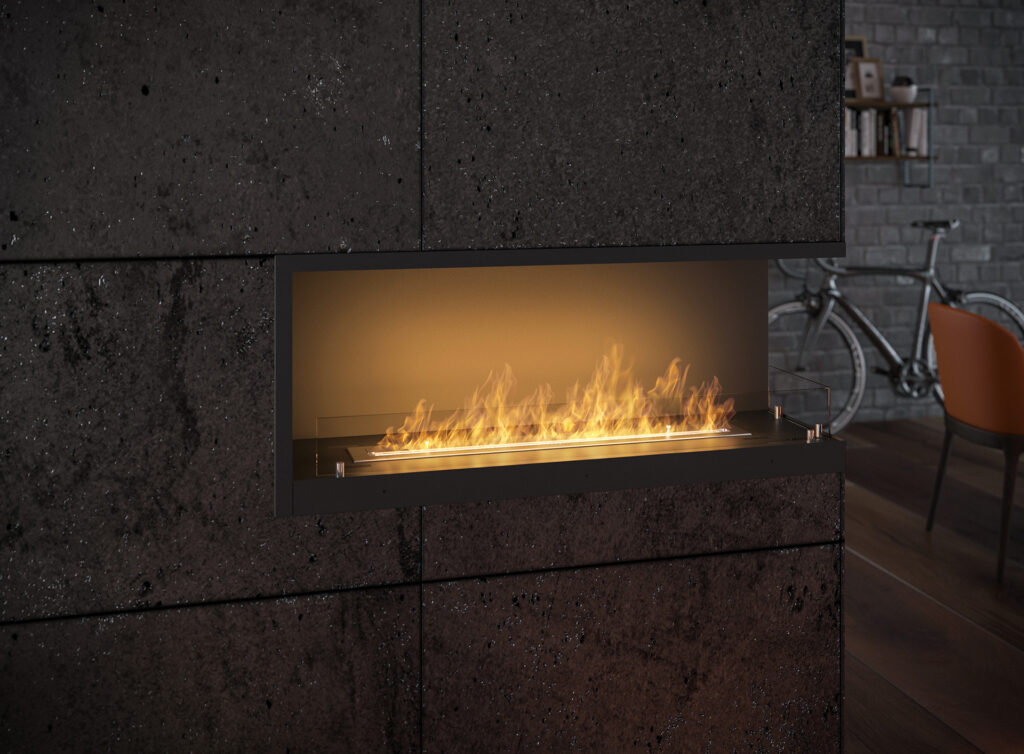 Kominki Inside L & P 1100 Vers2 są modelami do prostego montażu we wnęce. Rama kominka jest rozbudowaną wersją zawierającą w sobie system odpowietrzający zapobiegający powstaniu ciśnienia pod palnikiem w razie przelania paliwa. Kominek ma również wbudowaną izolację w górnej części pozwalającą na zamontowanie go np. w zabudowie Gips-kartonowej. Konstrukcja nie wymaga również robienia otworu w podłożu pod palnik. Wystarczy wstawić kominek w przygotowany otwór. Wersja L jest kominkiem z otwartą LEWĄ stroną natomiast P z otwartą PRAWĄ stronę . Takie rozwiązanie pozwala na obserwację ognia z dwóch stron oraz bardzo efektowne wypełnienie przejścia między pomieszczeniami.