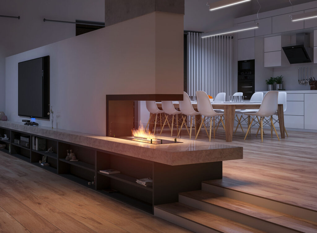 Model INSIDE U 1000.1 to kominek do zamontowania w przygotowanej wnęce. Jest to najbardziej rozbudowana z dostępnych modeli do zabudowy. Rama kominka wyposażona jest w system odpowietrzający zapobiegający powstaniu ciśnienia pod palnikiem w przypadku przelania paliwa. W ramie zamontowane są również 3 szyby wsuwane w specjalne szyny co pozwala na ukrycie wszystkich mocowań. Rama kominka ma również wbudowaną izolację co pozwala na bezpiecznie zamontowanie go np w zabudowie MDF lub Gips-kartonowej, Kominek może być pięknym i efektownym łącznikiem między dwoma pomieszczeniami.