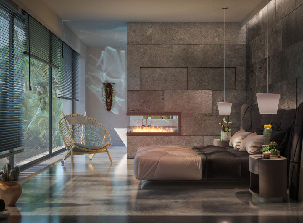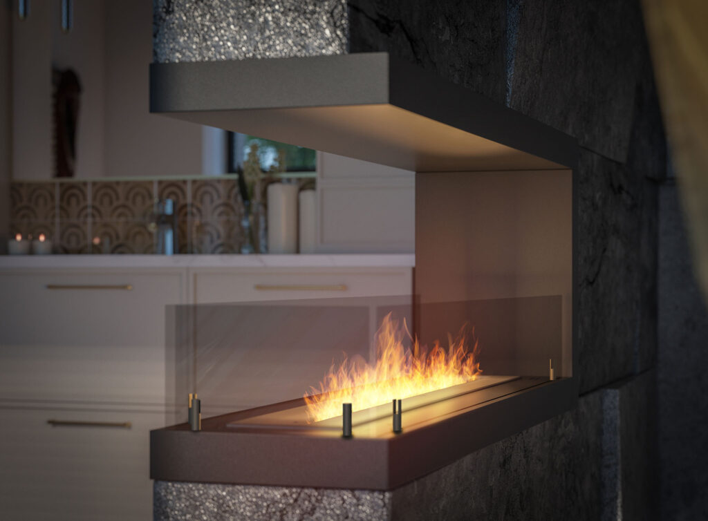 Model INSIDE U 1200.2 to kominek do zamontowania w przygotowanej wnęce. Jest to najbardziej rozbudowana z dostępnych modeli do zabudowy. Rama kominka wyposażona jest w system odpowietrzający zapobiegający powstaniu ciśnienia pod palnikiem w przypadku przelania paliwa. W ramie zamontowane są również 3 szyby wsuwane w specjalne szyny co pozwala na ukrycie wszystkich mocowań. Rama kominka ma również wbudowaną izolację co pozwala na bezpiecznie zamontowanie go np w zabudowie MDF lub Gips-kartonowej, Kominek może być pięknym i efektownym łącznikiem między dwoma pomieszczeniami.