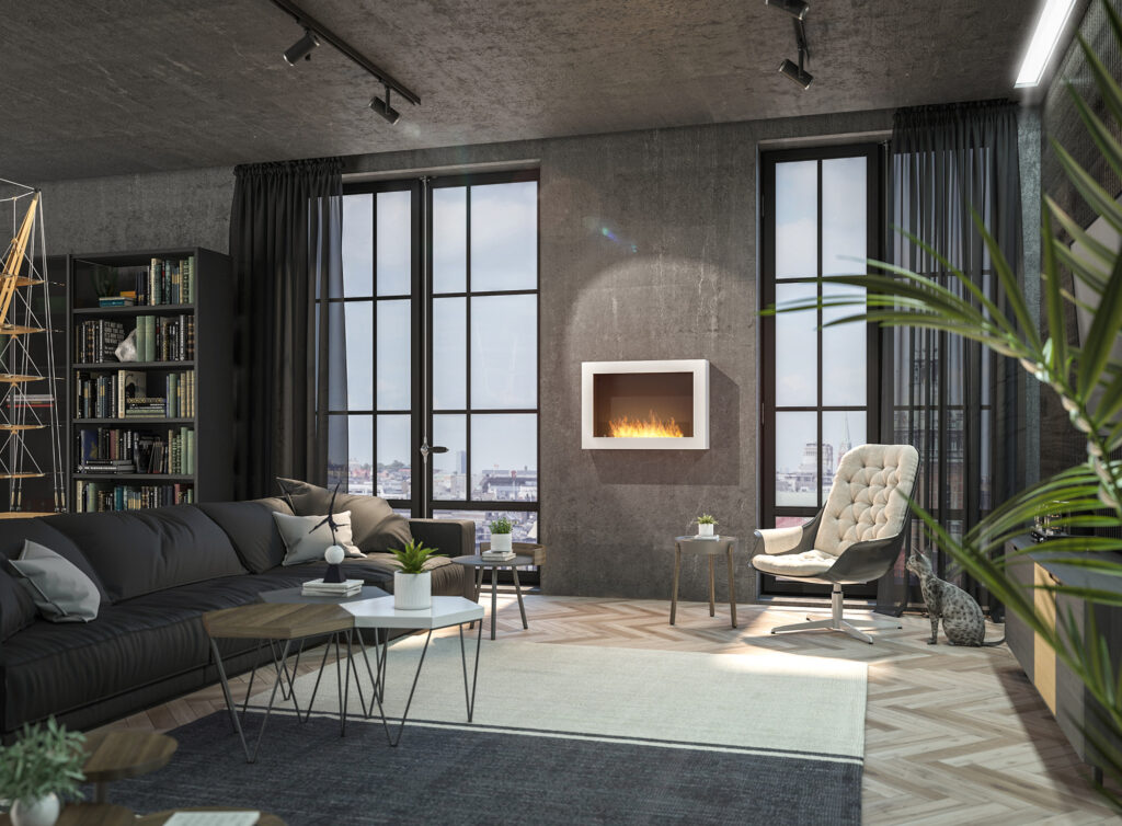 The Murall 800 model is a fireplace designed to be hung on the wall with two mounting pins. It cannot be used on chipboard, furniture or plasterboard walls, or on walls covered with wallpaper. The refined form of the Murall fireplace and the warmth and magical atmosphere it provides will make it a perfect enrichment of any space. The fireplace can be adapted to the character of any interior thanks to the possibility of changing the color and dimensions of the fireplace! The Murall model is equipped with a tinted glass pane inserted into the fireplace, which increases the safety of use and makes the fire look exceptionally attractive. The design of the fireplace, refined details and built-up side walls make the fireplace look great from every perspective.