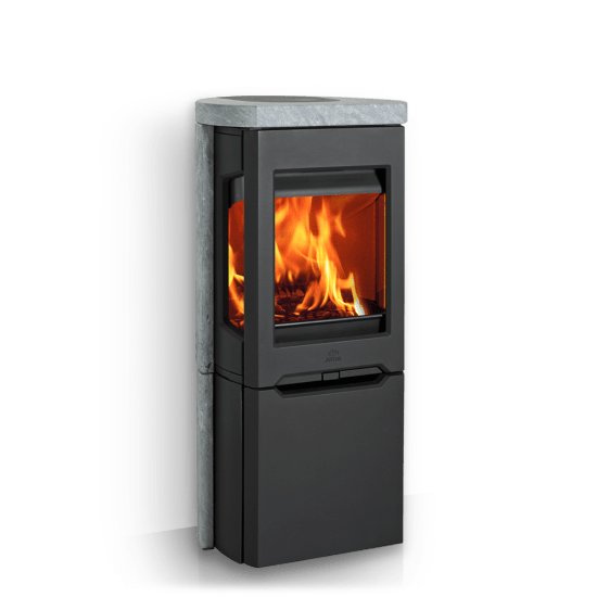 Jøtul F 165 S jest umieszczony na żeliwnej podstawie z drzwiczkami, gdzie można ukryć potrzebne akcesoria.