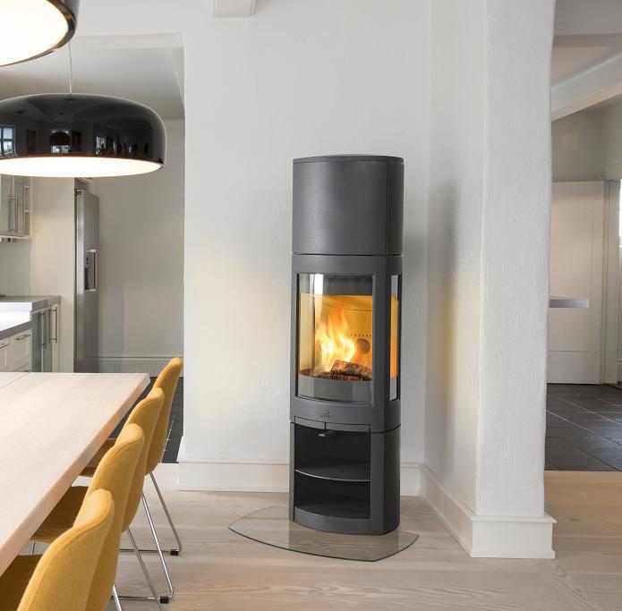 Jøtul F 371V2 Advance jest charakteryzuje się czystymi liniami i elegancką podstawą z praktyczną półką.