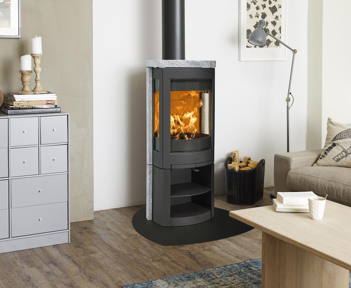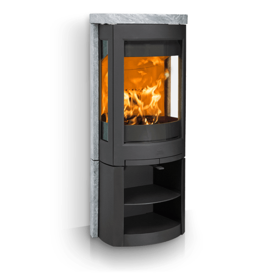 Jøtul F 377V2 Advance posiada eleganckie, akumulujące ciepło panele ze ze steatytu. Jest również wyposażony w praktyczny schowek z wyjmowaną półką w podstawie.