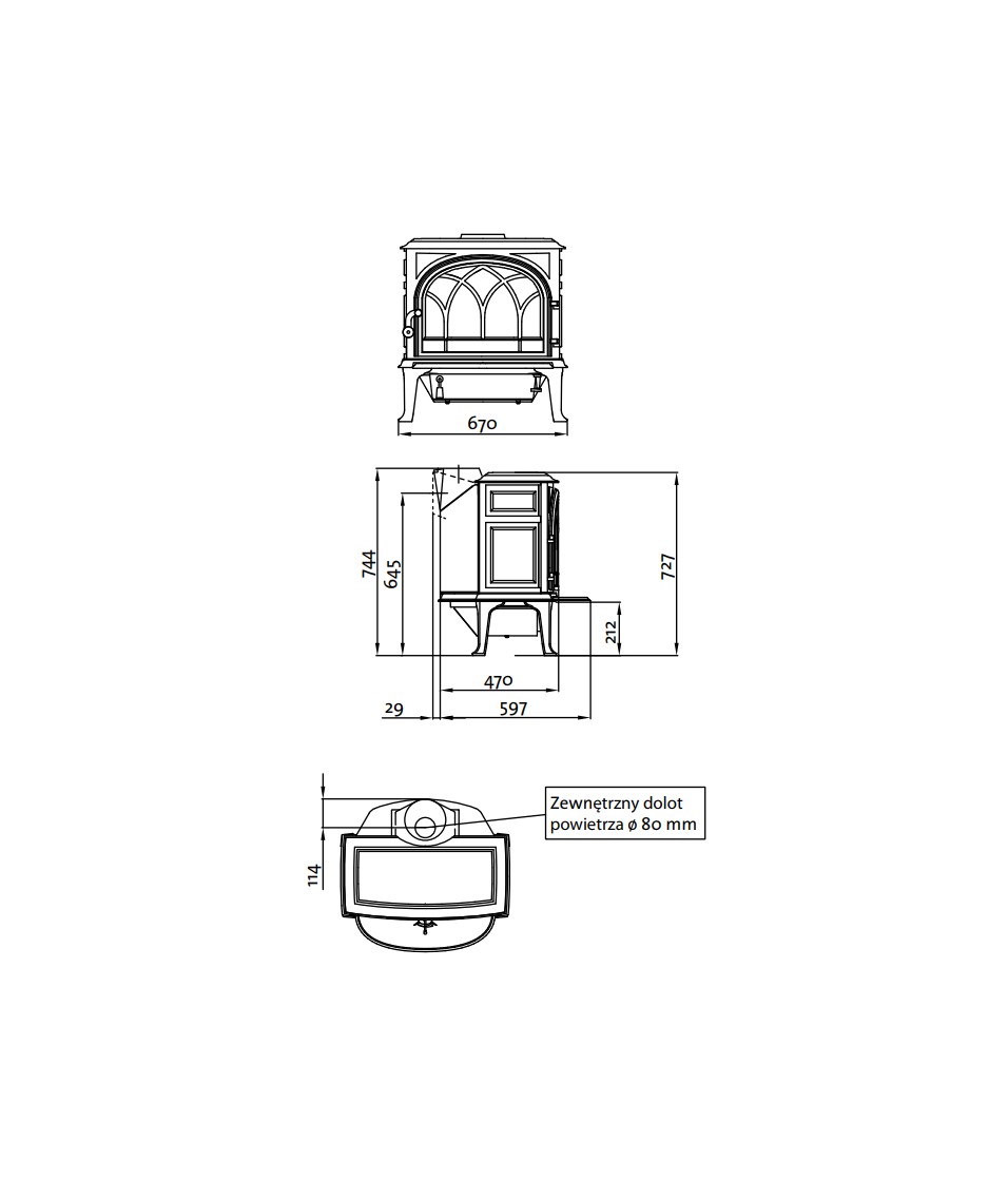 744x670x597 mm