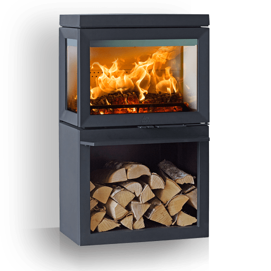 W podstawie pieca znajduje się praktyczna schowek na zapas drewna.