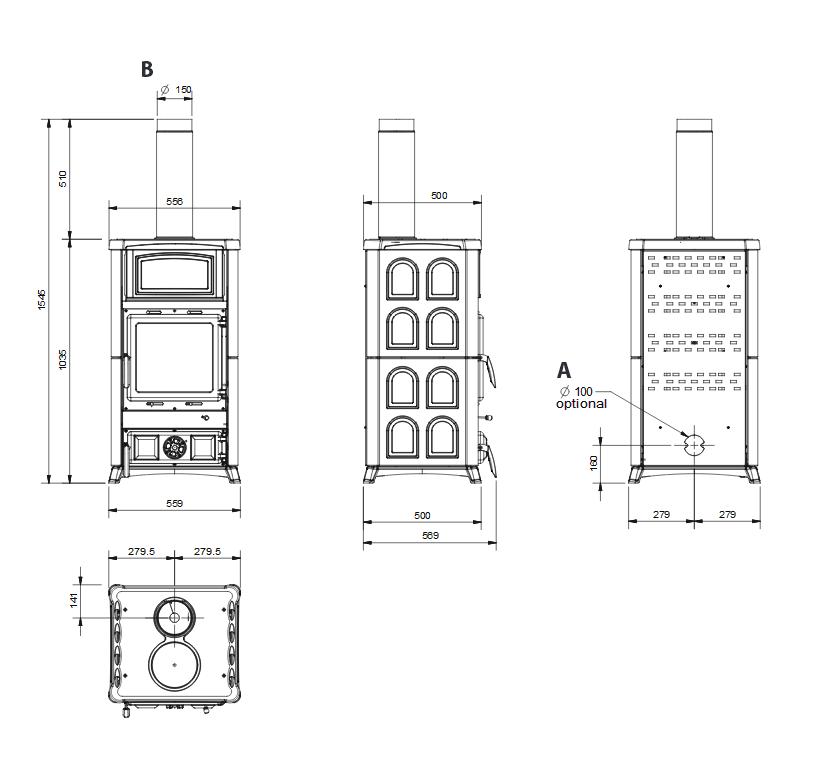 • Einstellbare Primär- und Sekundärluft für eine bessere Verbrennungskontrolle