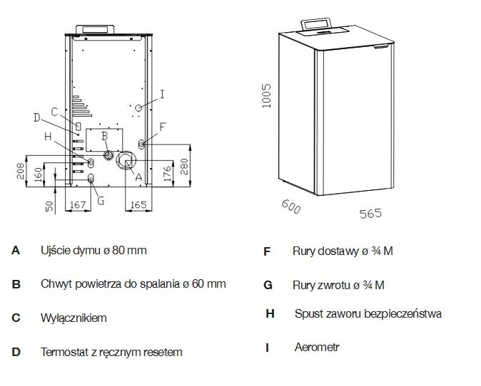 Rozmiar wylotu dymu; średnica 80 mm