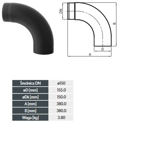 Kolano spalinowe gięte 90° fi 150 niskie