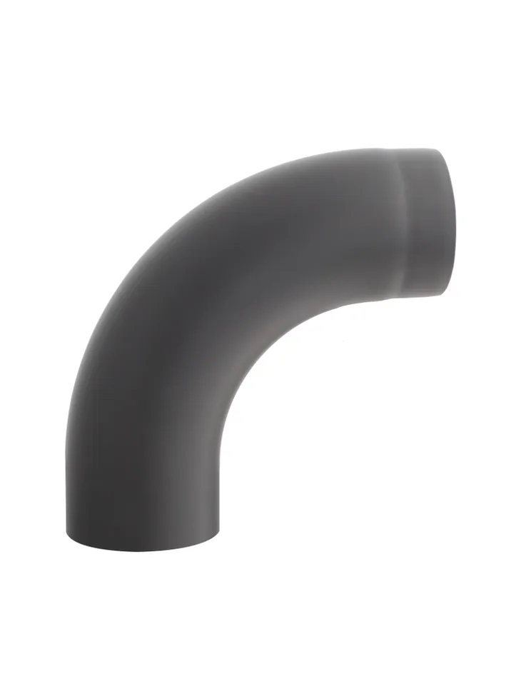 Kolano gięte stosowane jako przyłącz do odprowadzania spalin z kominków i urządzeń grzewczych na paliwa stałe, pracujących bez kondensacji. Pokryte z zewnątrz farbą żaroodporną Senotherm.