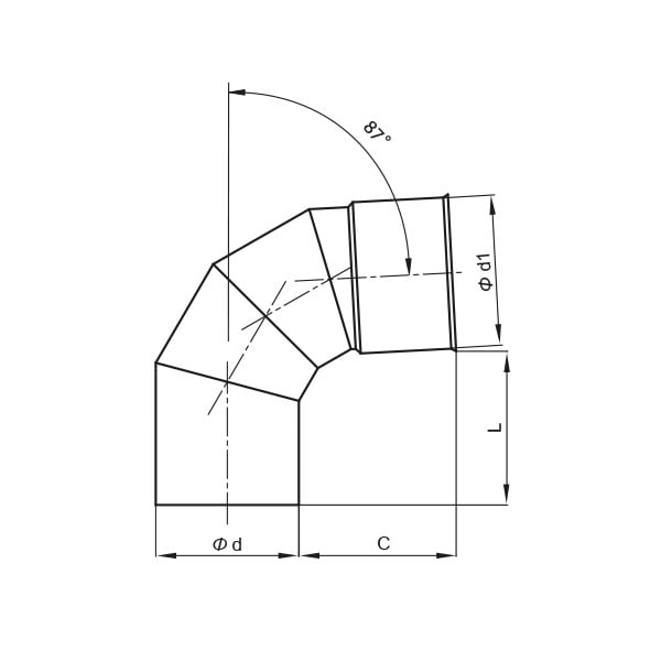 Prvok slúžiaci na zmenu smeru prúdenia spalín na pripojení kotla. Uhol 87 stupňov