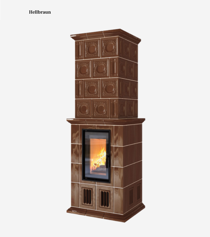 Kominek Bella Rosa 15 został zaprojektowany w tradycyjnym stylu w formie ułożonych w stos prostopadłościanów z trzema subtelnymi półkami i jest wykonany całkowicie z kafli akumulacyjnych w stylu machasterskim i barokowym. Kafle produkowane są ręcznie w naszej własnej fabryce i dostępne są w różnych kolorach.
