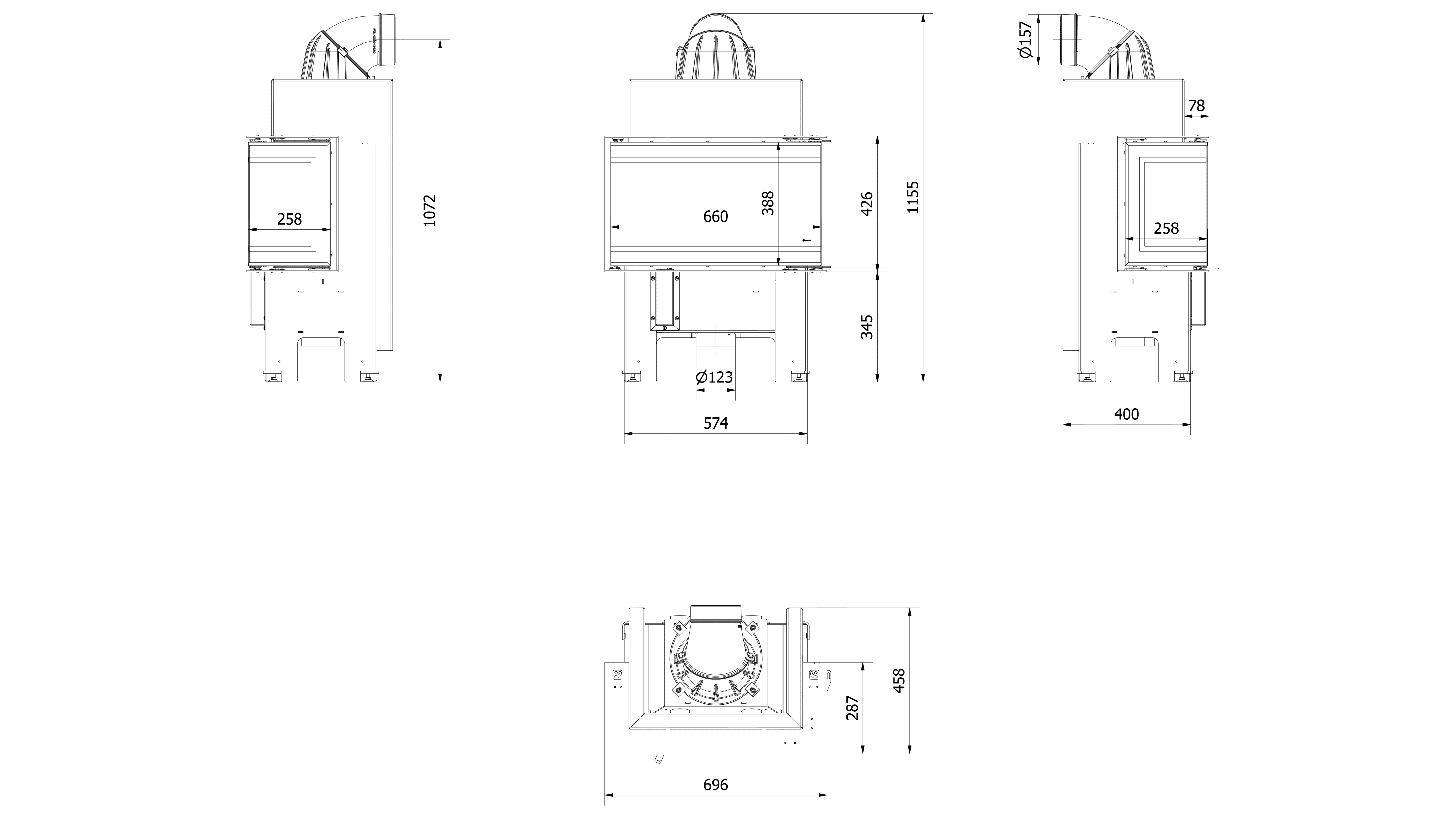 Kominek powietrzny stalowy KRATKI LUCY lewy BS 14 kW Ø 200
