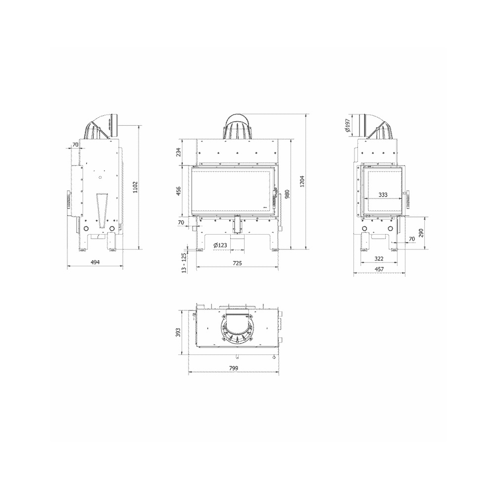 Kominek powietrzny stalowy KRATKI LUCY lewy BS 12 kW Ø 200