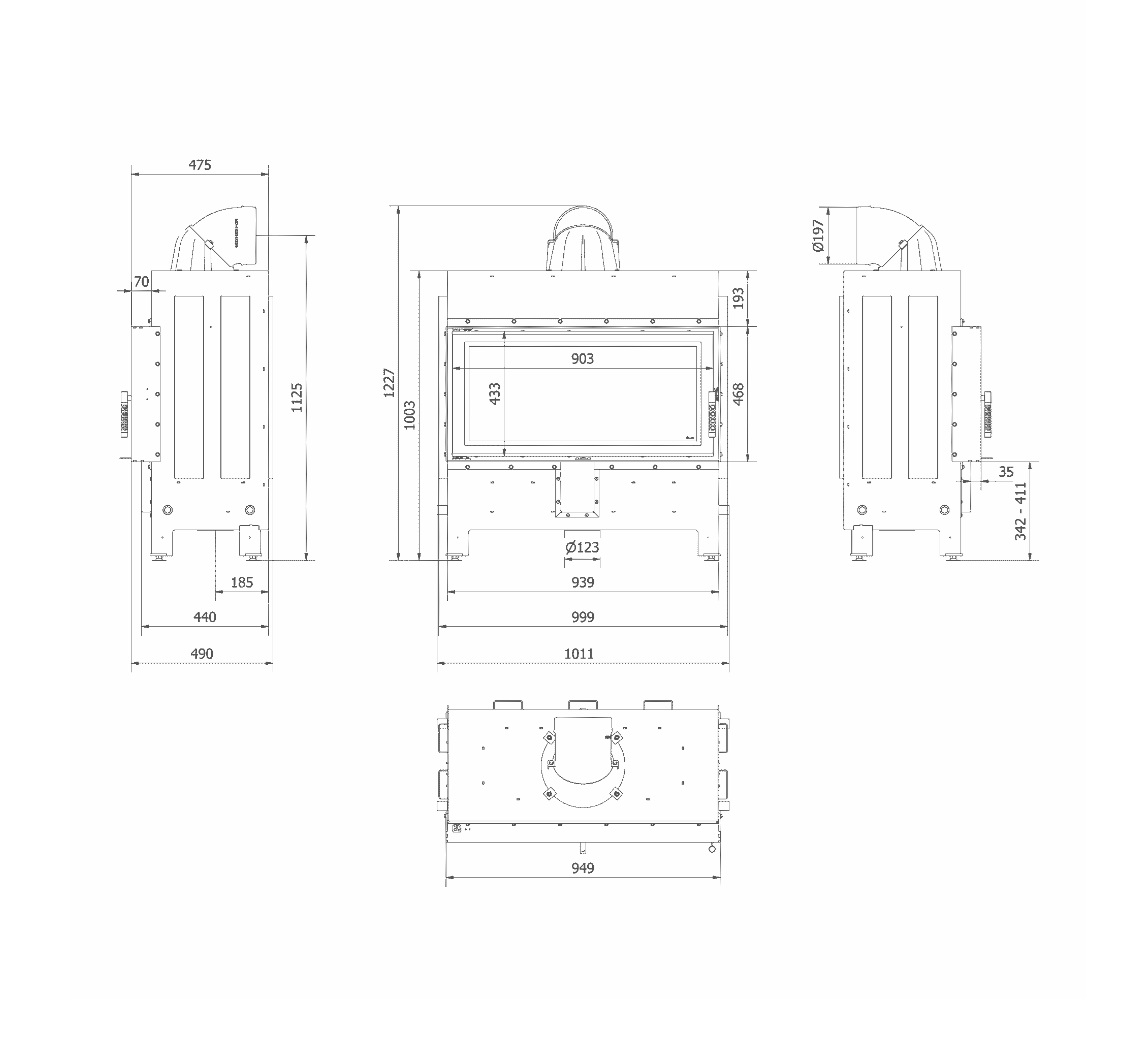 Wkład kominkowy powietrzny prosty
