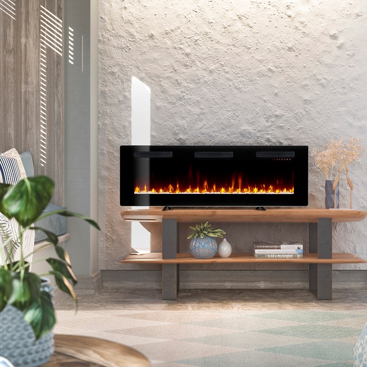 Kominek liniowy Sierra 60″ z wielobarwnym efektem płomienia Multi-flame to elegancka ozdoba każdej przestrzeni. Model ten posiada kilka opcji montażu: we wnęce ściennej, na ścianie, lub za sprawą dołączonych nóżek – na blatach mebli. Warto wspomnieć, iż szyba urządzenia nie nagrzewa się, a jego funkcjami można łatwo sterować za pomocą wielofunkcyjnego pilota, jak i wygodnej aplikacji Tuya Smart. Sierra posiada także opcję odtwarzania dźwięku płonącego drewna, który działa relaksująco oraz tworzy przytulny nastrój. Wymienne materiały dekoracyjne (polana, akrylowe kryształki, białe otoczaki) i wielobarwne podświetlenie paleniska doskonale współgrają z aranżacjami utrzymanymi w tradycyjnym, jak również w nowoczesnym stylu.