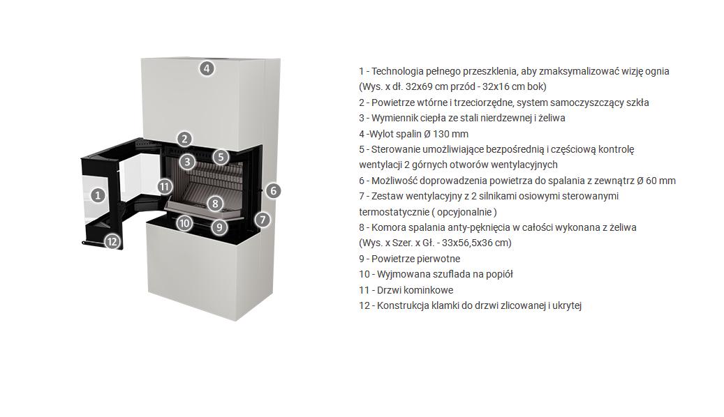 To idealne połączenie pieca i kominka, zawiera wszystkie ekonomiczne zalety pieca, nie rezygnując z uroku panoramicznej wizji ognia w trójstronnym kominku. Dzięki swojej wszechstronności jest rozwiązaniem dla tych, którzy chcą zainstalować gotowy piec kominkowy, bez konieczności zajmowania się kosztownymi pracami .