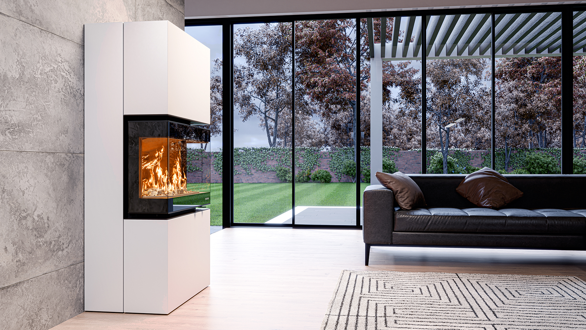 Trójstronny kominek na drewno TRILOGIE firmy THERMOROSSI;