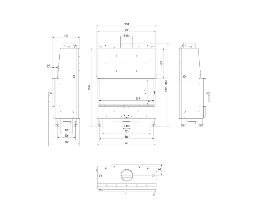 Wyjmowany ruszt i popielnik ułatwiają utrzymanie wkładu w czystości.