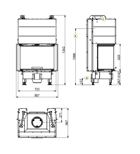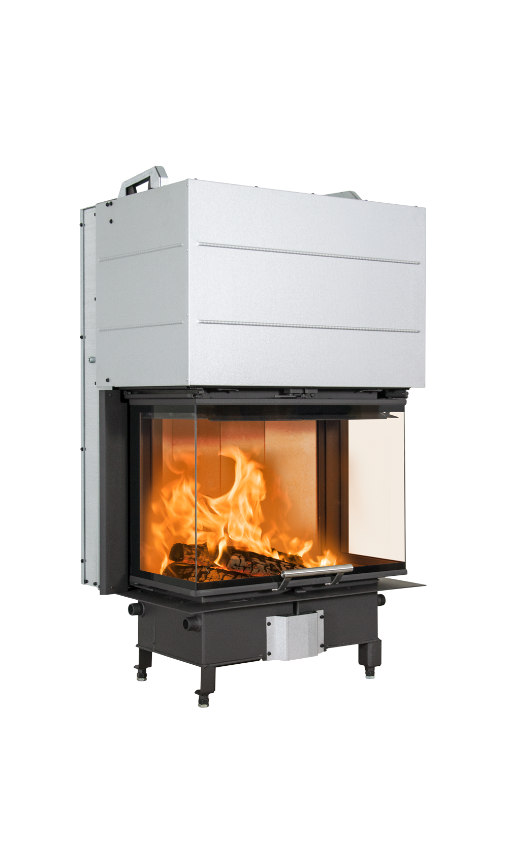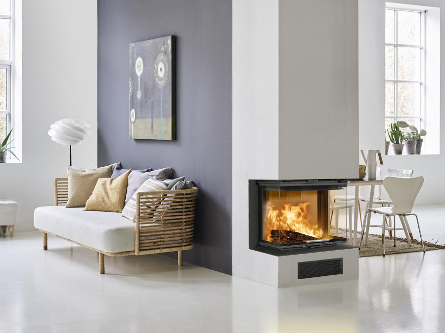 Scan 5004 FRL je trojhriadeľová krbová vložka s ležatým ohniskom. Zdvihnuté dvere majú presný gilotínový mechanizmus.