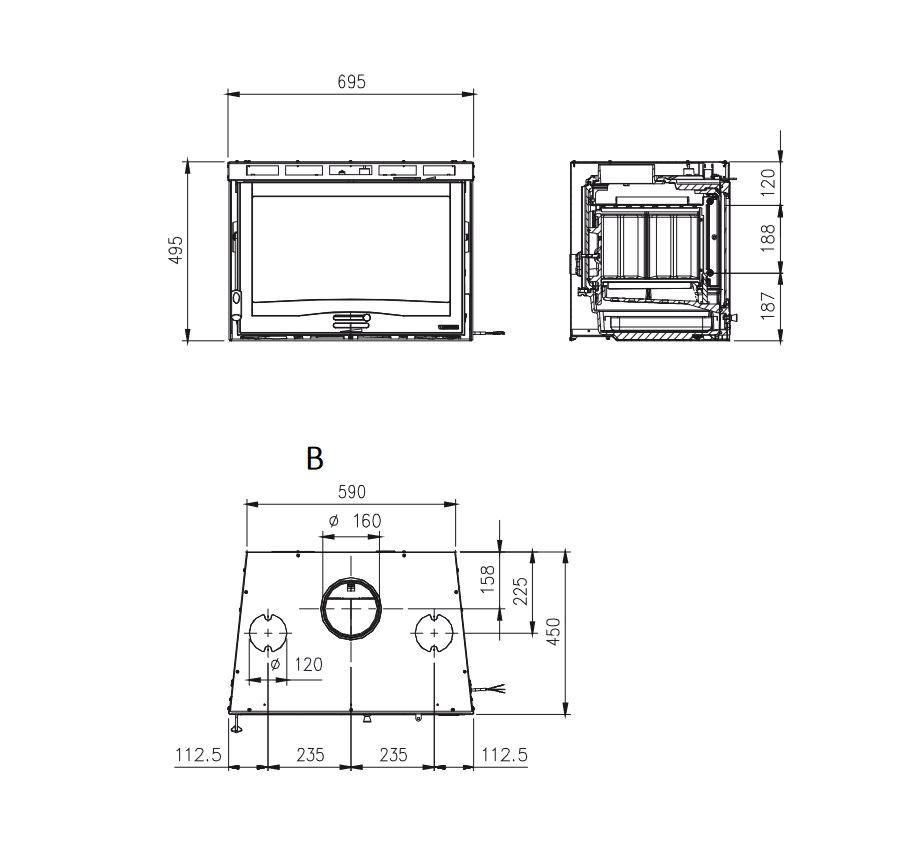 Rozmery (šírka x výška x hĺbka): 695 x 495 x 450 mm