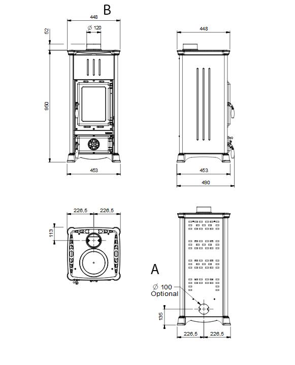 Vlastnosti: • Posuvná zásuvka na popol • Vnútorné obloženie krbu z liatiny • Dvierka, horná časť, podstavec a rám zo smaltovanej liatiny • Nastaviteľný primárny a sekundárny vzduch pre lepšiu kontrolu spaľovania • Systém dodatočného spaľovania (nízke emisie) • Keramika sklo • Vonkajšia smaltovaná oceľ Externý prívod vzduchu (ASC) – Špeciálny spojovací systém, ktorý umožňuje nasávanie vzduchu zvonku a privádzanie do predhriatej miestnosti.