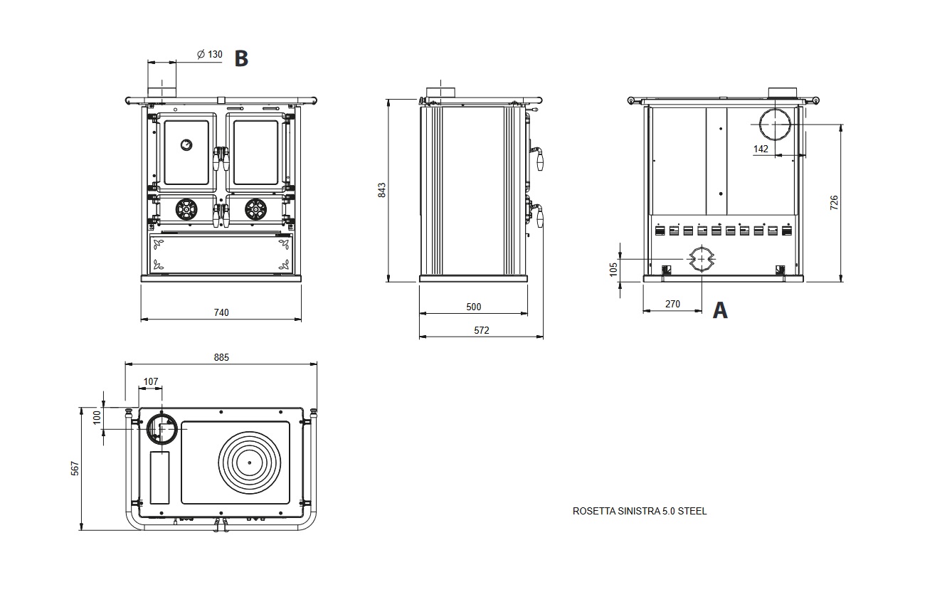 Priemer výstupu spalín: 130 mm (výstup spalín zhora alebo zozadu, iba na ľavej strane)