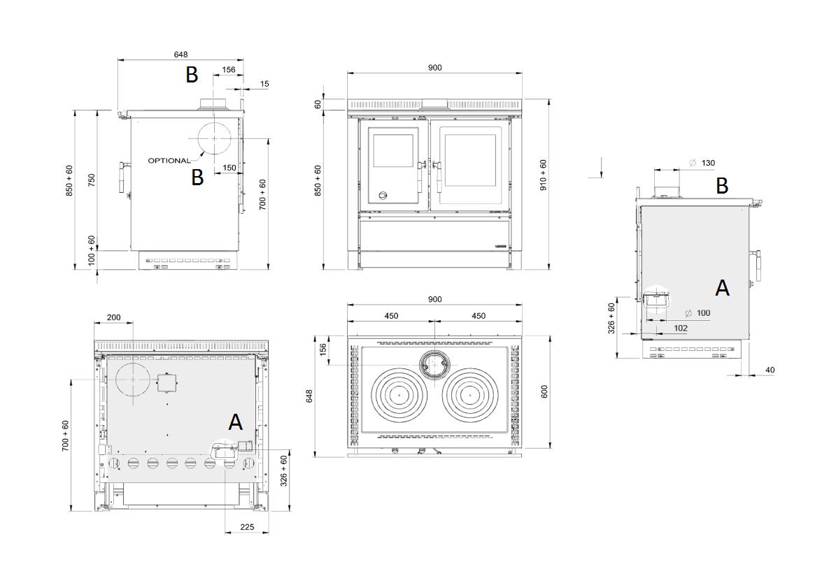 • Rauchabzug oben mittig, hinten oder rechts