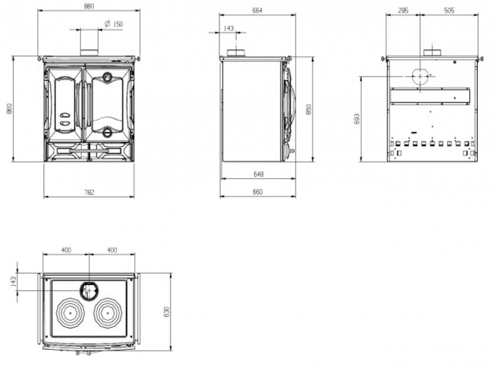 Rozmery (šírka x výška x hĺbka) : 880x860x660 mm
