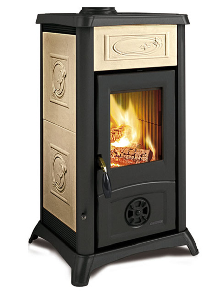 La Nordica – Extraflame Gemma Voľne stojace kachle na drevo, vzduch. Ohnisko, liatinová horná doska a dvierka, výsuvný popolník. Bývanie z majoliky v dvoch prevedeniach: elegancia – bordová alebo biela liberty – béžová a prírodný kameň – mastenec. Spaľovací vzduch: primárny + dopaľovanie spalín + systém „čistého skla“. Horné pripojenie dymovodu. Charakteristika: