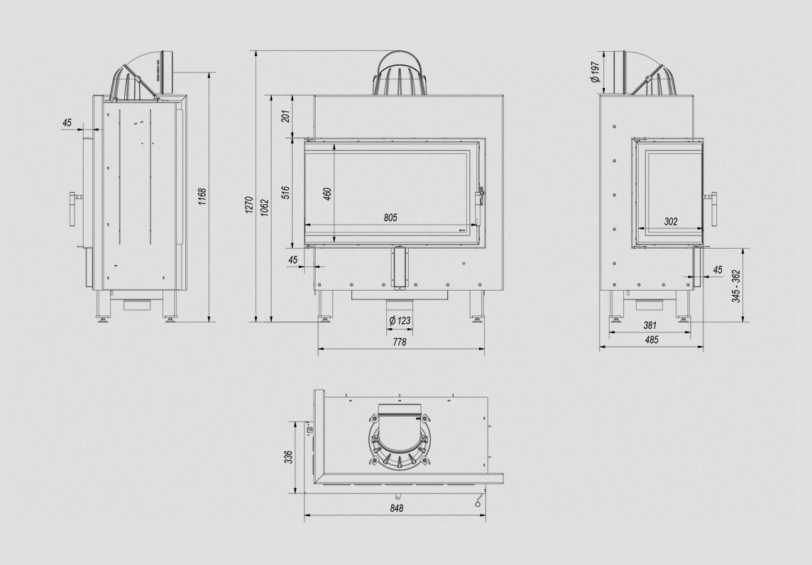 Maksymalne wykorzystanie ciepła dzięki gęsto rozmieszczonym radiatorom oraz ściankom paleniska wykonanym z wysokiej jakości żeliwa o grubości 8 mm.