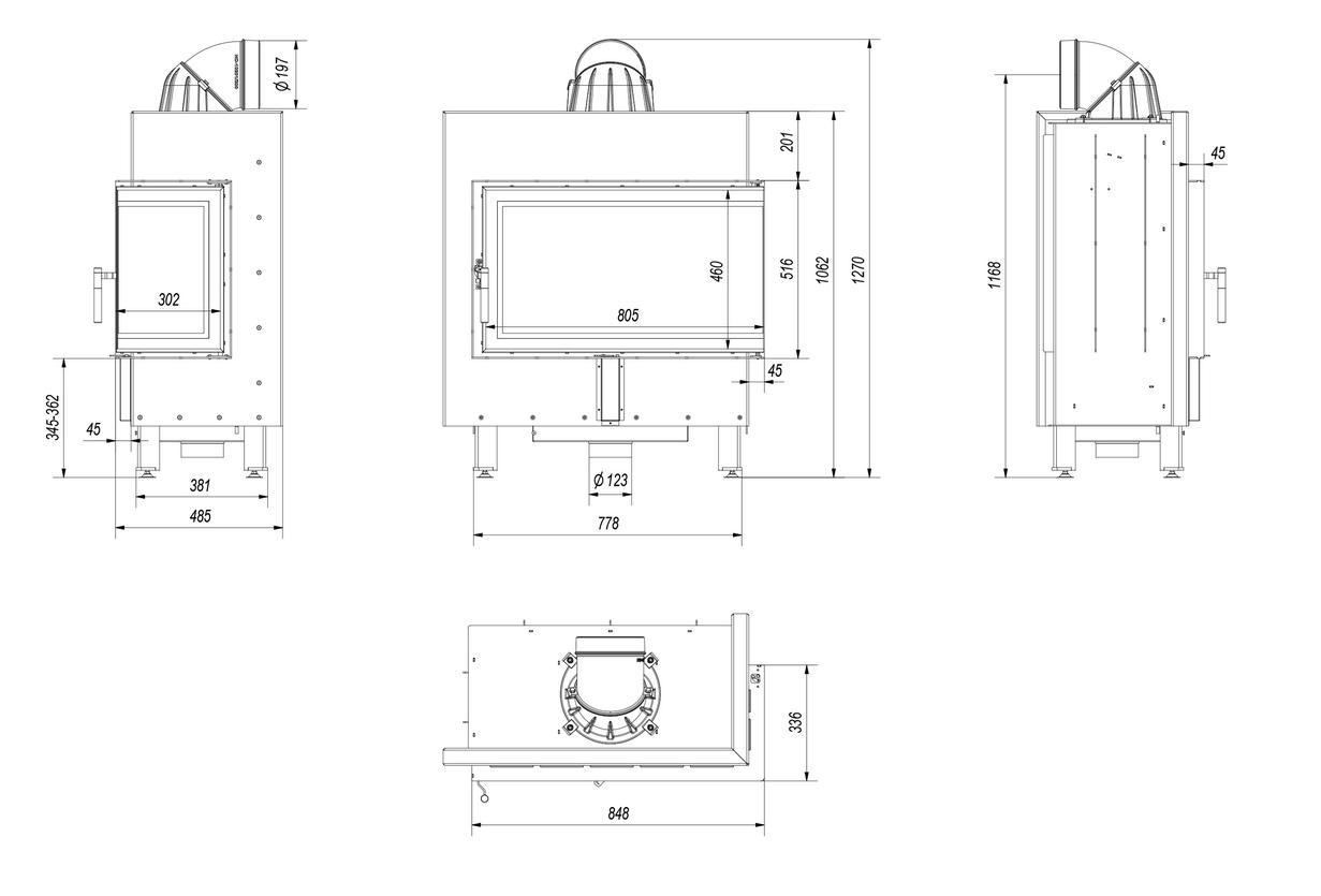 Maksymalne wykorzystanie ciepła dzięki gęsto rozmieszczonym radiatorom oraz ściankom paleniska wykonanym z wysokiej jakości żeliwa o grubości 8 mm.