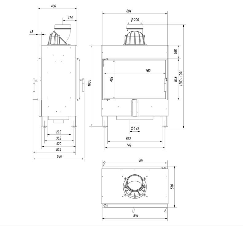 Wkład kominkowy trójstronny NBC 9 lewy / prawy BS gilotyna