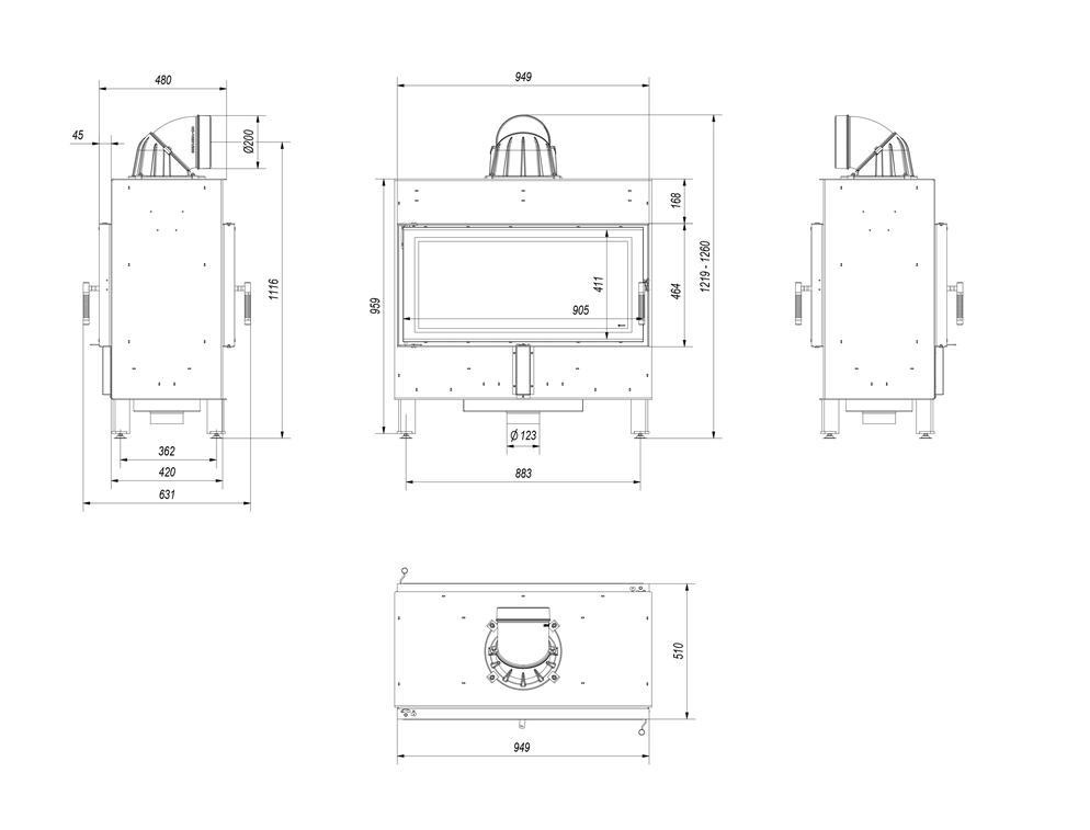 The model is equipped with a movable exhaust outlet, thanks to which it is not necessary to purchase additional elbows in the case of installation. You can easily adjust the angle of connecting the insert to the chimney system.